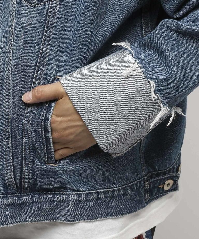 ルーズ感のあるサイズ設定になっていて、性別問わずざっくり羽織るようなスタイルにも最適な一着。一見シンプルながら、袖元のロールアップやバックに取り付けられた花鳥風月デザイン等しっかりと存在感のあるアイテムに仕上がっていてコーディネートの主役として活躍してくれること間違いなしです。袖元はカットオフになっていて気分やコーディネートに合わせて捲る幅や位置は調整可能なデザイン。