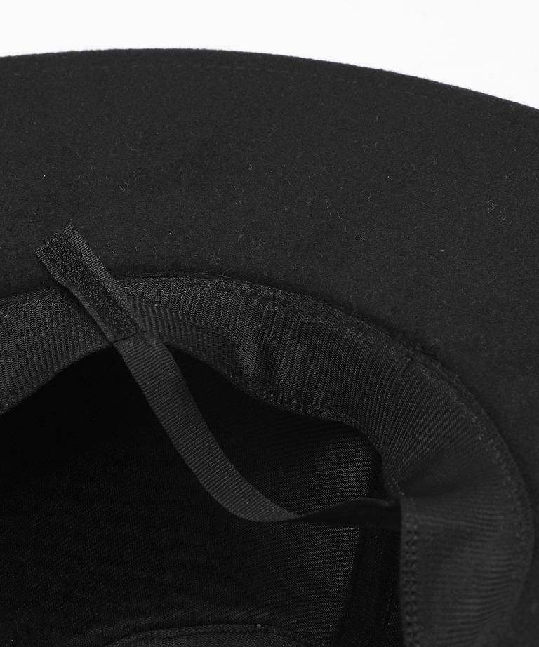 サイドにローズ刺繍を施しリボンにはメッセージ性あるロゴプリントを配置。 コーディネートのポイントになるハットです。 ブリムはロングに設定。 内側に紐が通してありサイズ調整可能。