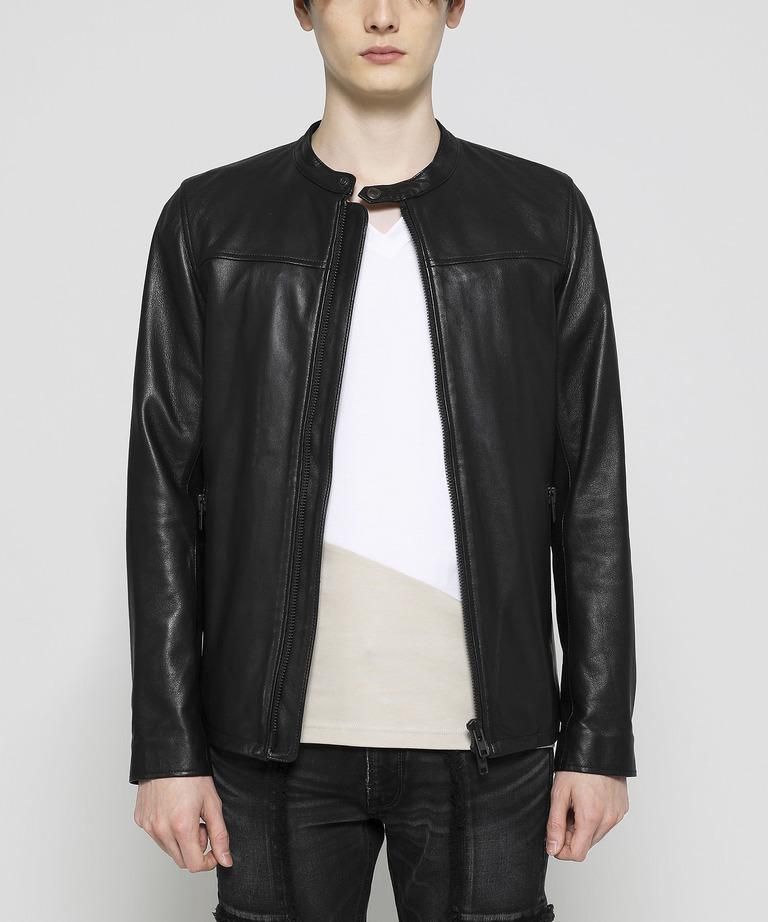 シンプルでスマートな大人の雰囲気ので綺麗な印象のシングルタイプのレザージャケット。ラムレザーを使用することで非常に滑らかな質感で柔らかい感触が特徴的。キメ細やかで高級感がありながら軽くて着やすいのもポイント。 あえて無駄な装飾抑えることでコーディネートにも取り入れやすく袖部分にジップを取り付けることで着脱をスムーズにしてくれたり等もあり軽やかで着心地も抜群。