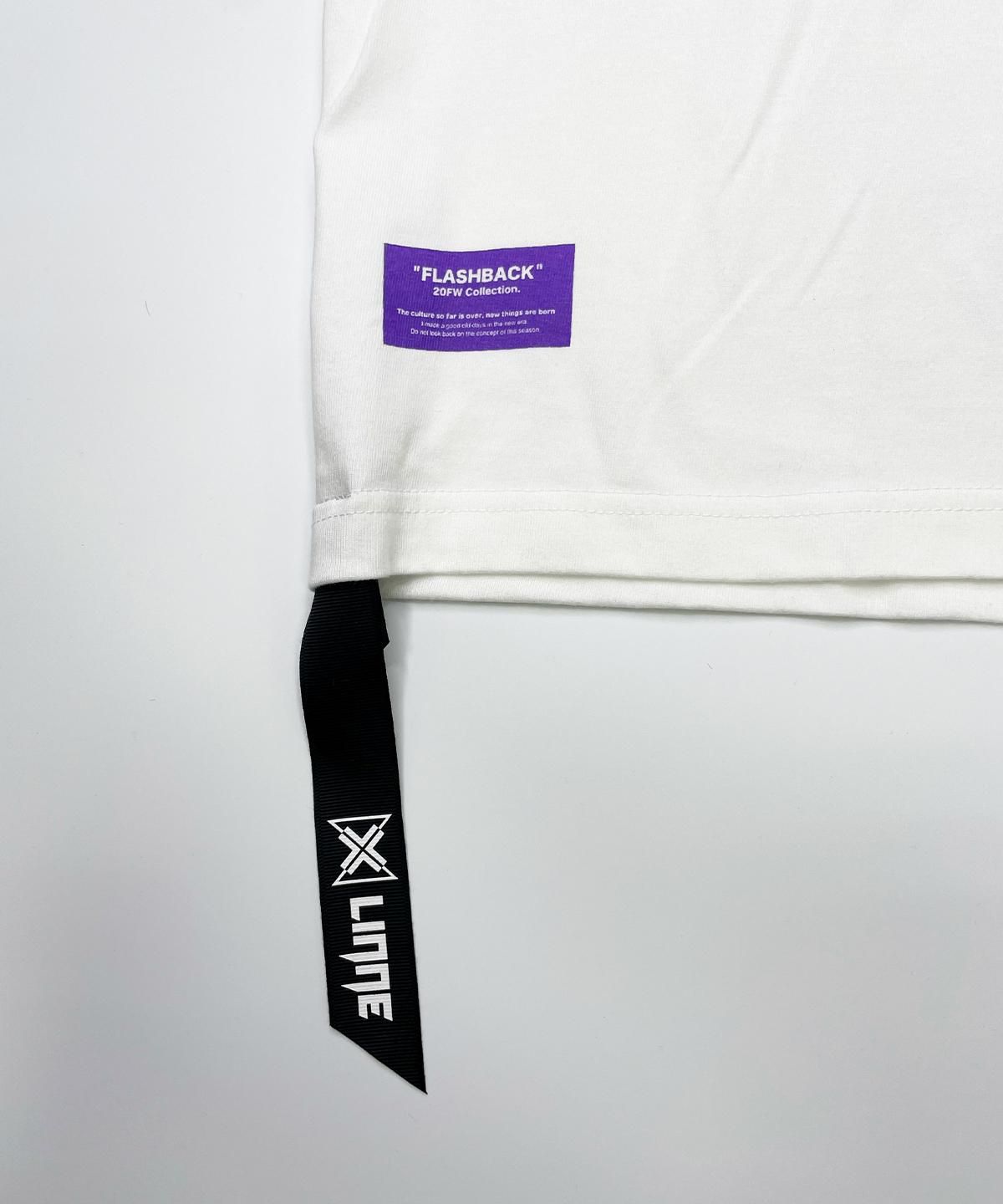 オリジナルで製作したFLASHBACKをドリップした新型ロゴにLINNEの代名詞のロゴを組み合わせ、裾とバック腰部分には、FLASHBACKを代表する随所のデザイン。