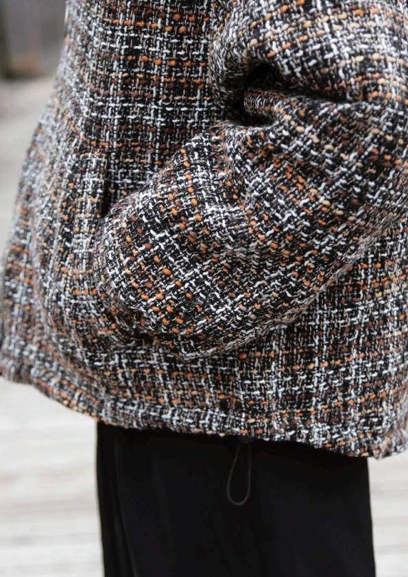 軽くてロープ状に編み込まれたツイード風の生地を仕様した中綿ブルゾン。