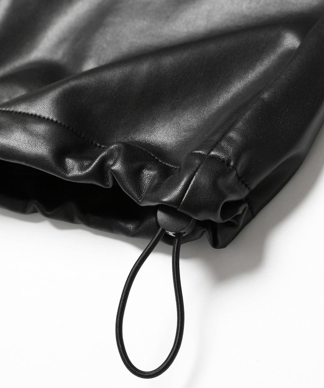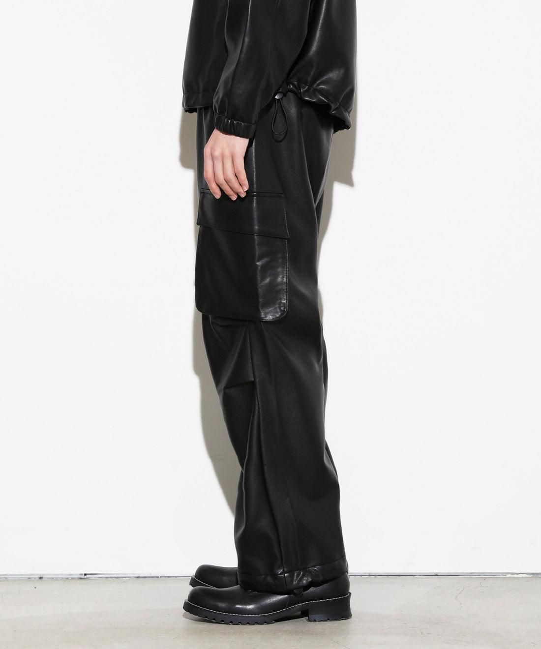 本革のような風合いを持った合皮生地をベースにしたカーゴパンツ。