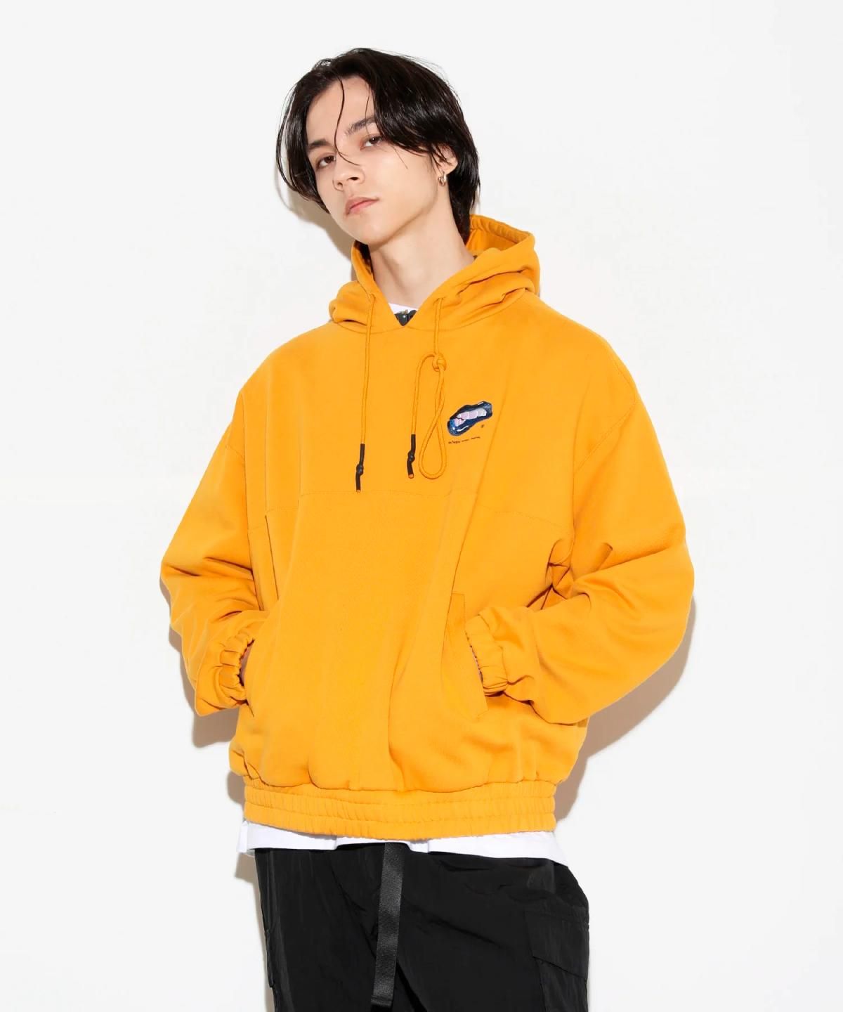 Lipモチーフロゴと切り替えデザインが特徴的なパーカー。