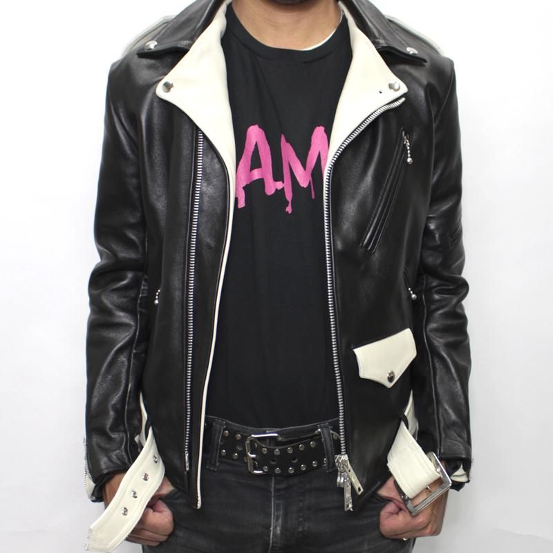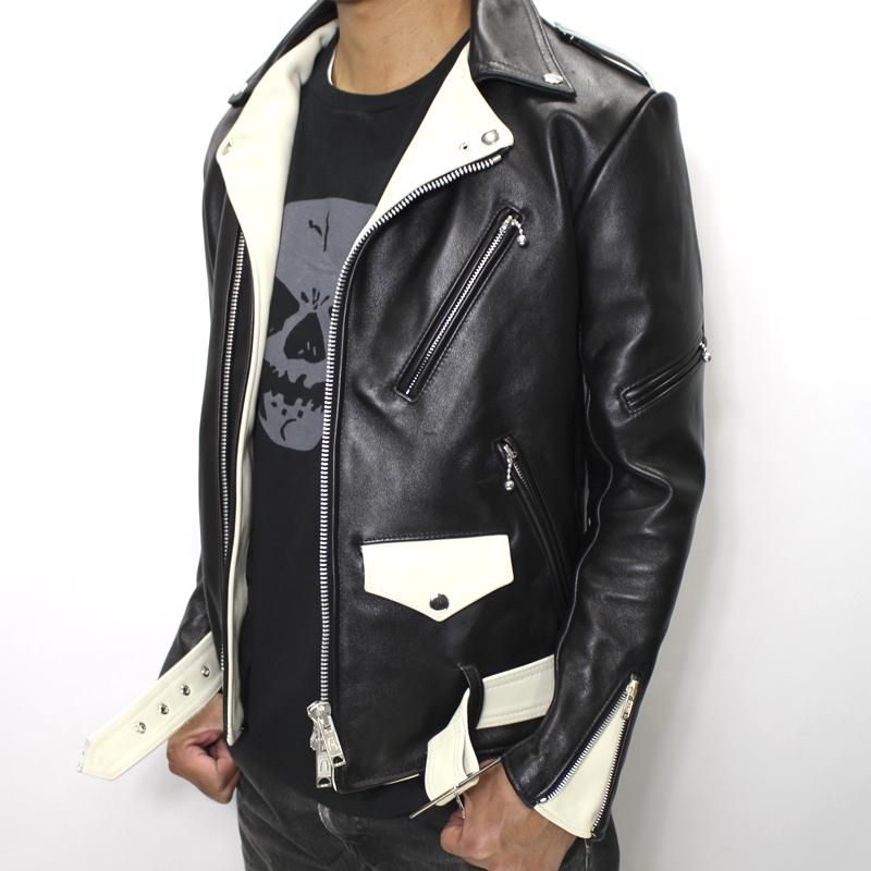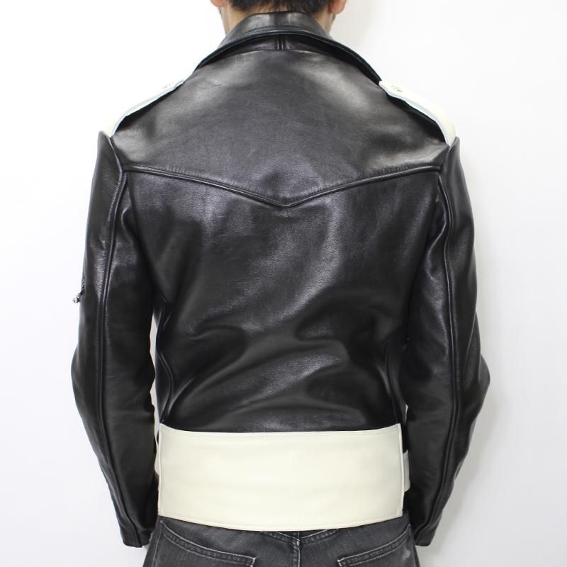 上襟・下襟ともに小さめに仕立て、 ダブルライダース特有の重厚感を和らげています。