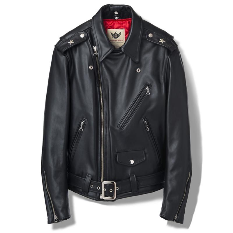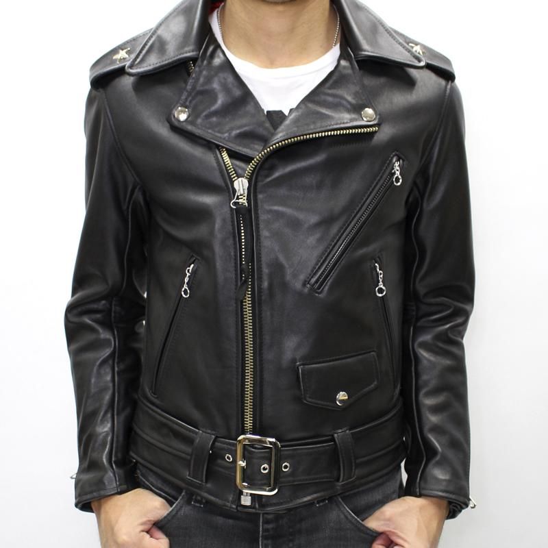 1953年末に公開された映画「乱暴者」の中で、マーロン・ブランド演じる主人公のジョニー・ステイブラ―が着用したライダースジャケットの肩章にスタースタッズが1つずつ付けられていたことから通称「ワンスター」と呼ばれた、U.S.フロントベルトタイプの定番モデルです。