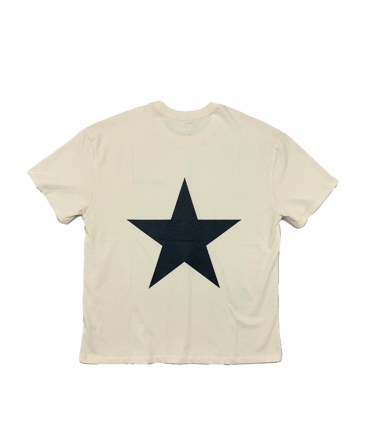 バックスタイルに施されたスターのデザインが存在感抜群の人気のTシャツです。