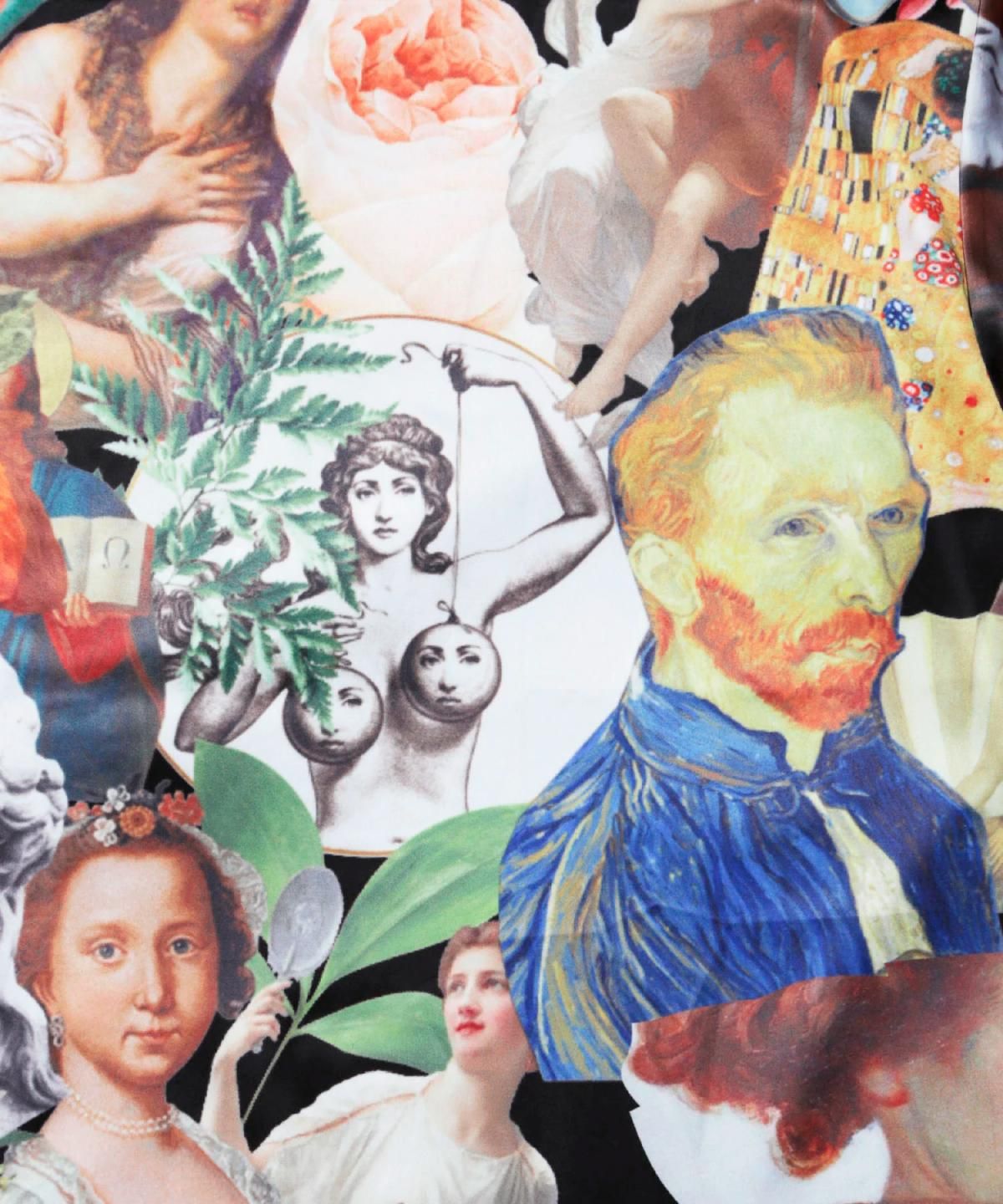 絵画モチーフのグラフィックがをコラージュにしたオリジナルグラフィックを使用。