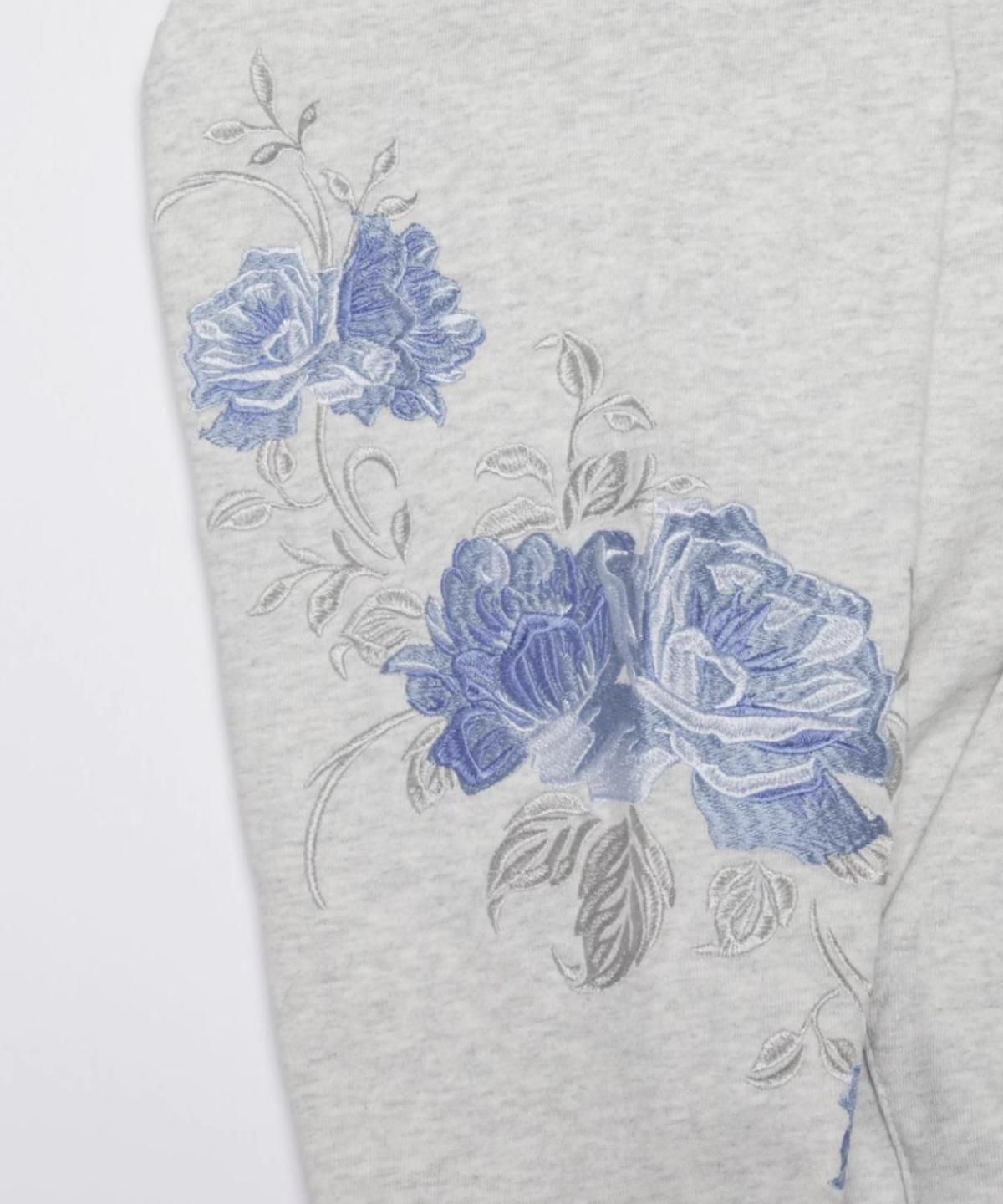 袖元にバラの刺繍を入れたハーフジップトレーナー。