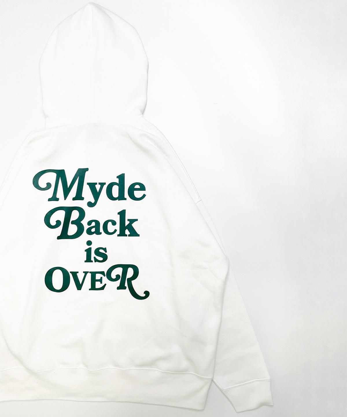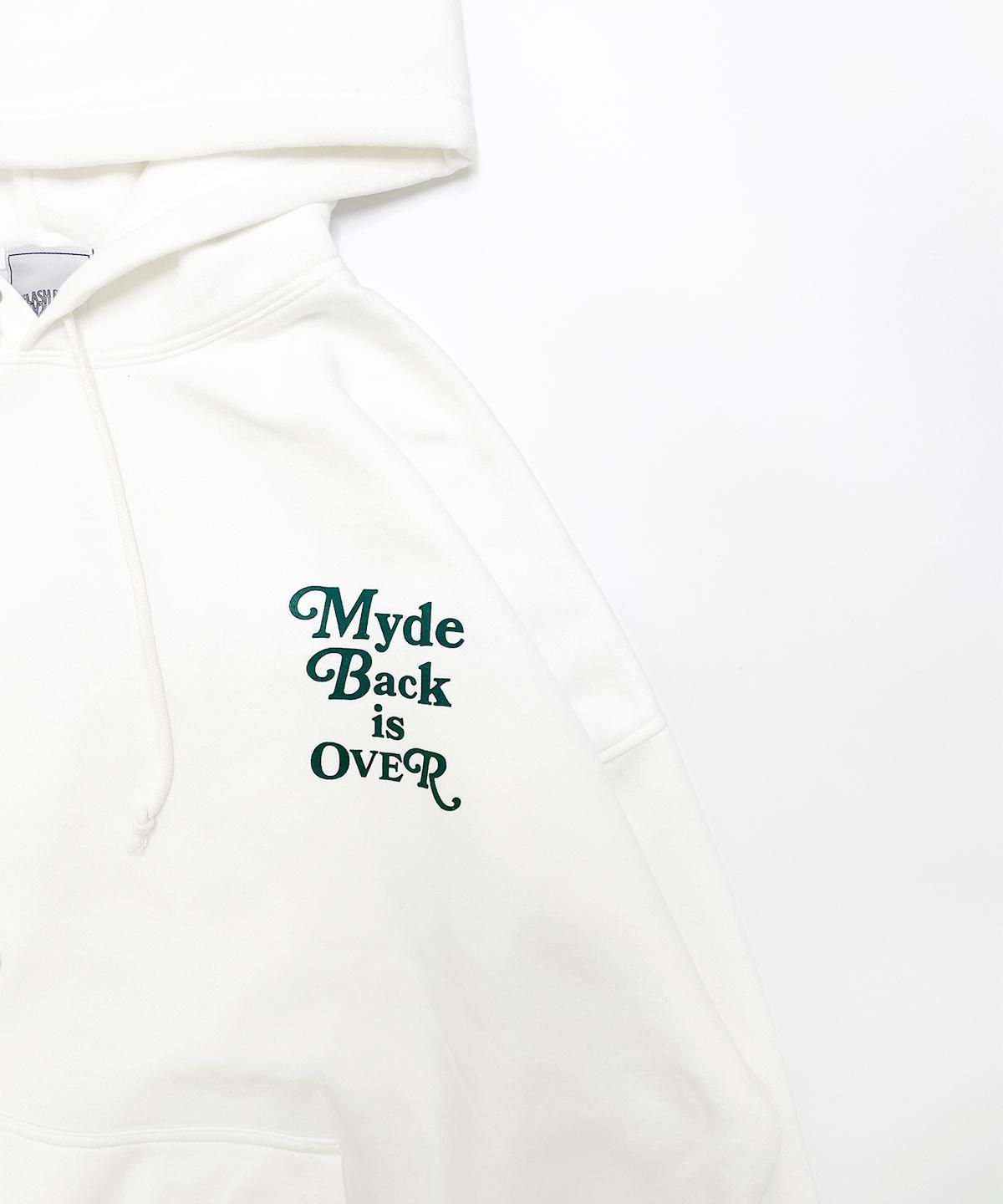 【FLASHBACK最新作23AW】''Myde Back is OVER'' OVERSIZE Hoodie WHT