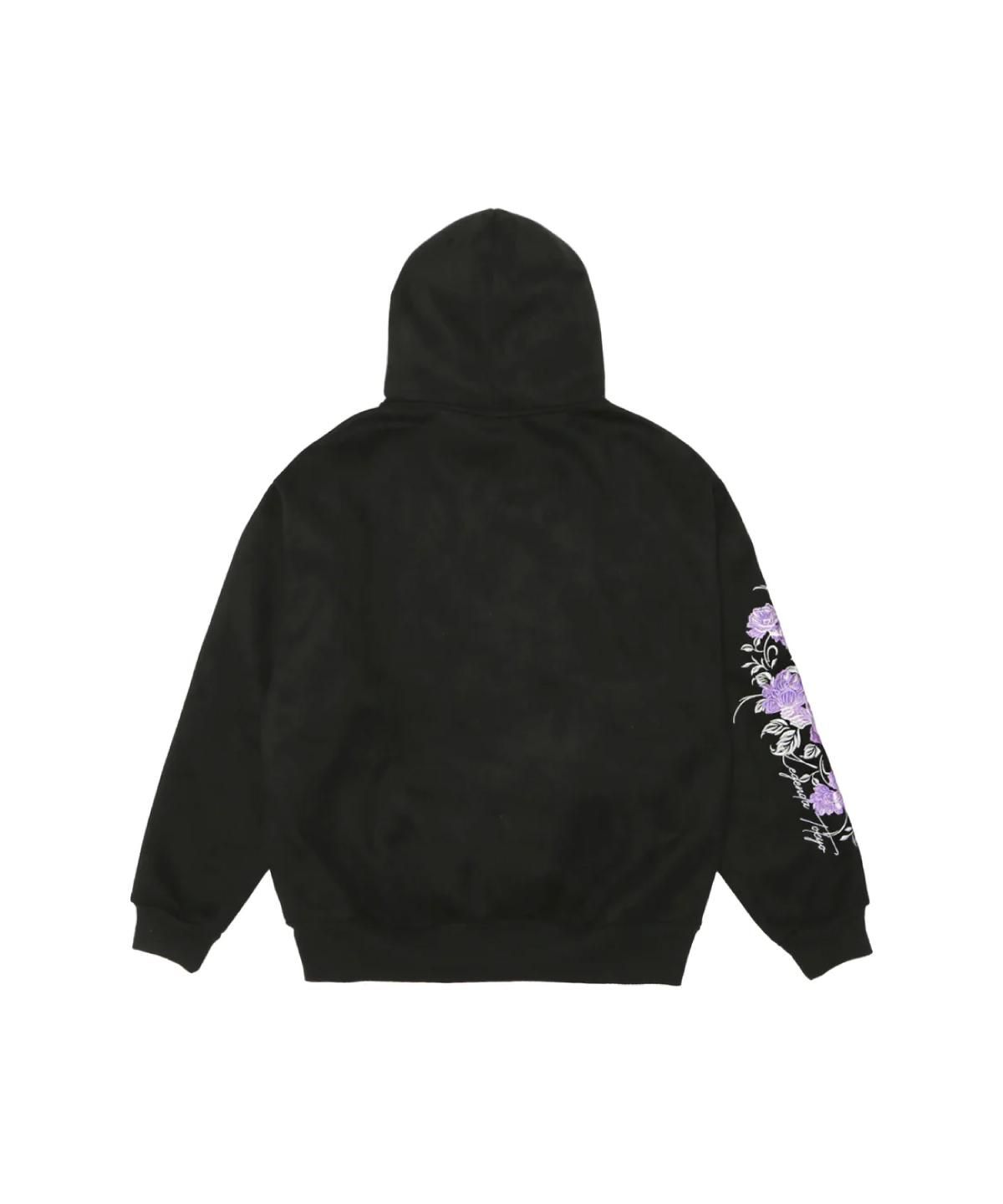 Suede Like New Rose Embroidery Hoodie BLK/PUP [LEC1162]