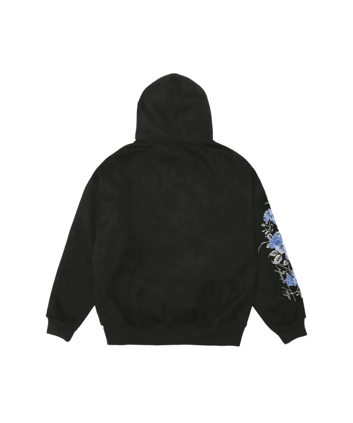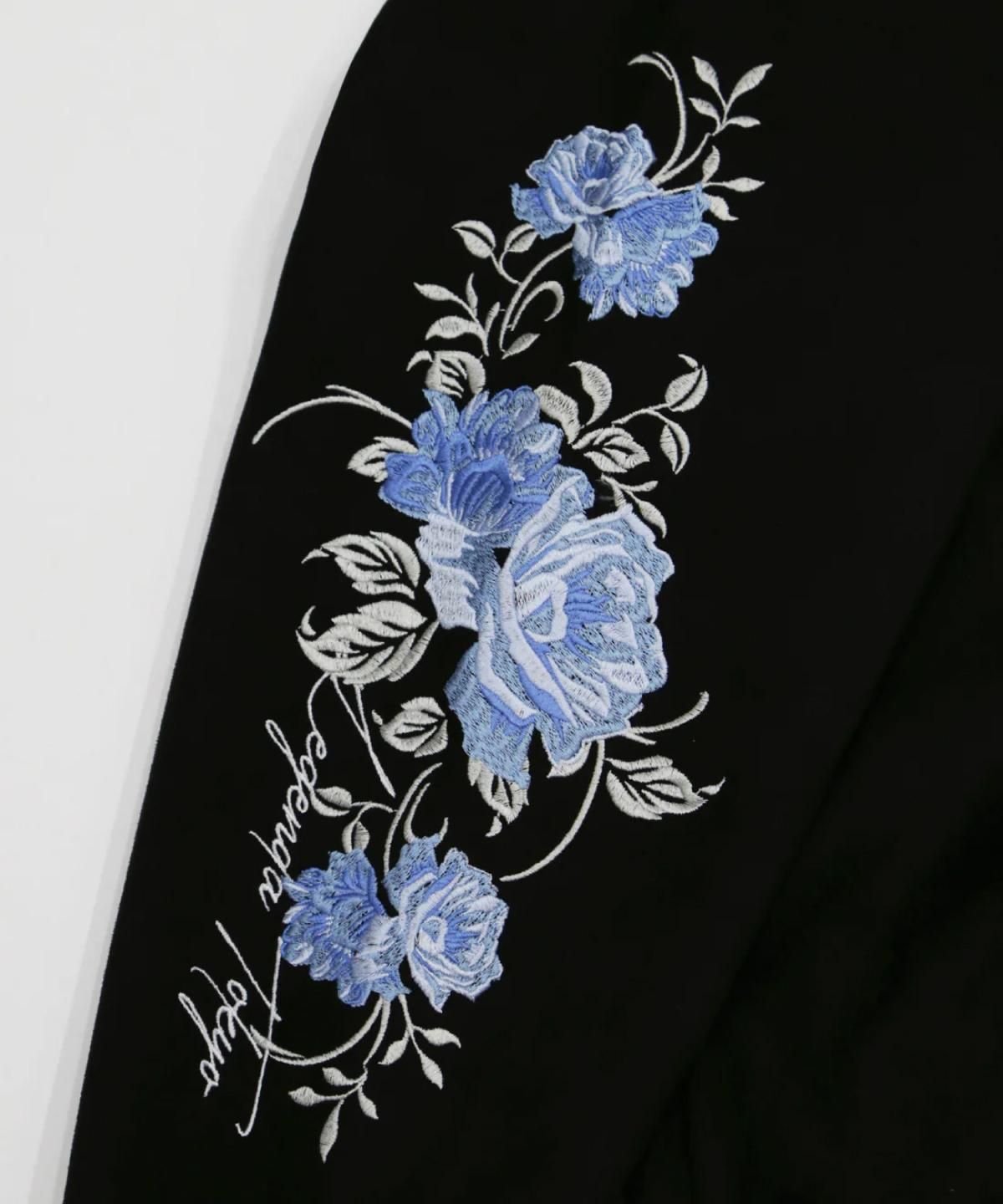 Suede Like New Rose Embroidery Hoodie BLK/BLUE [LEC1162]