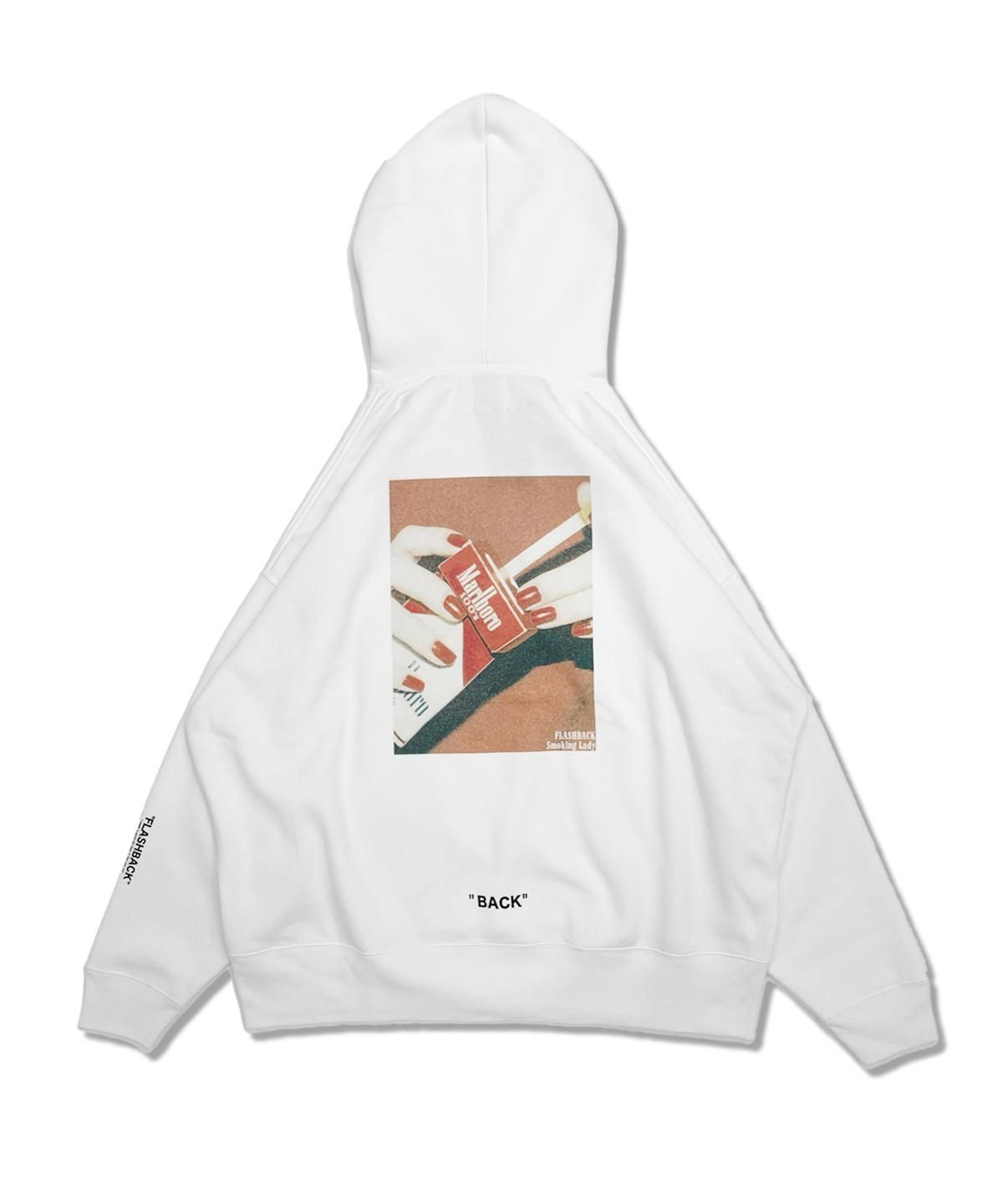 【新春SALE2025】【FLASHBACK最新作23AW】Smoking RED BOX Back Photo OVERSIZE Hoodie WHT 14,300円→7,150円