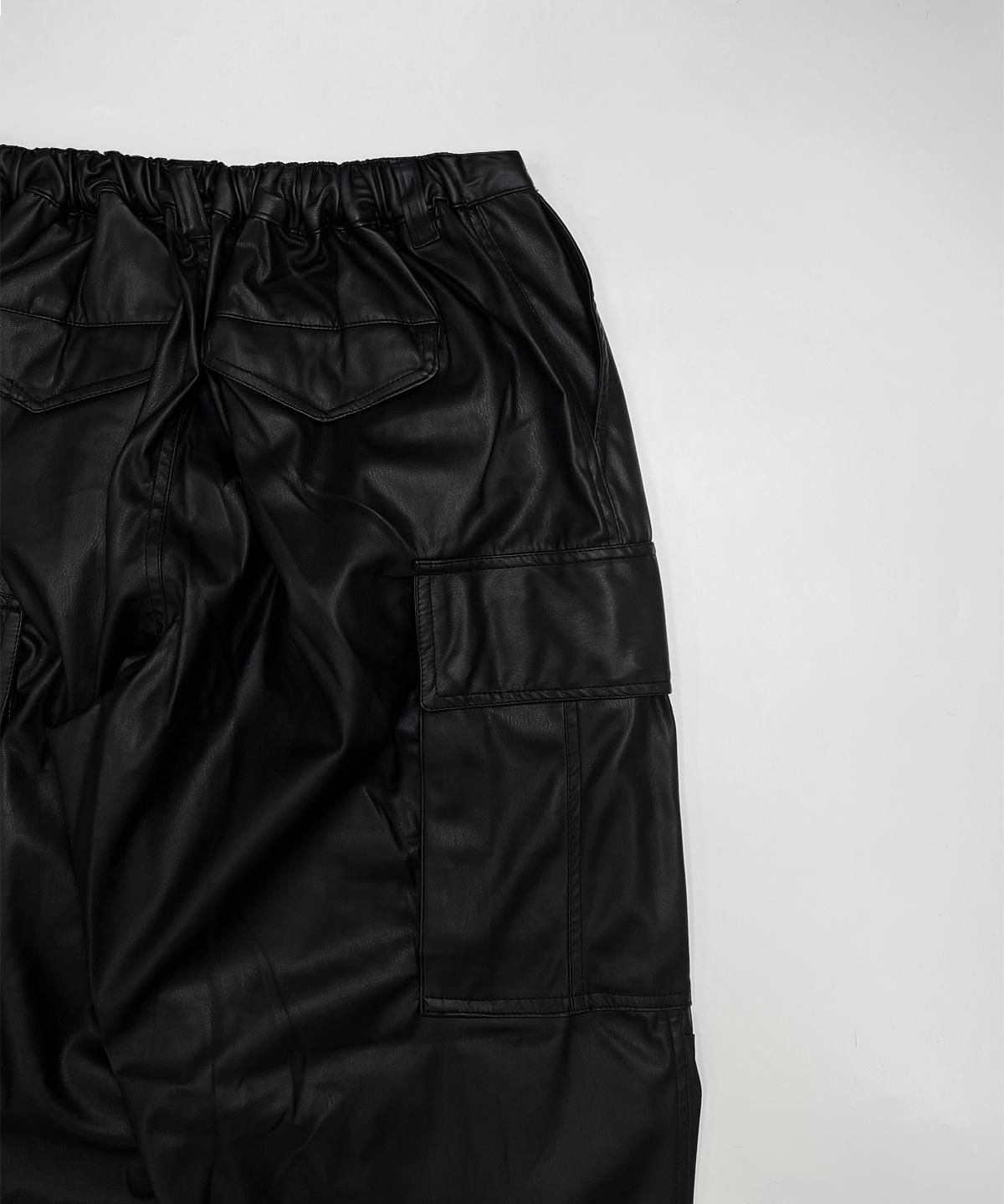 【FLASHBACK最新作23AW】''FLASHBACK" Wide Cargo Fake Leather Pants