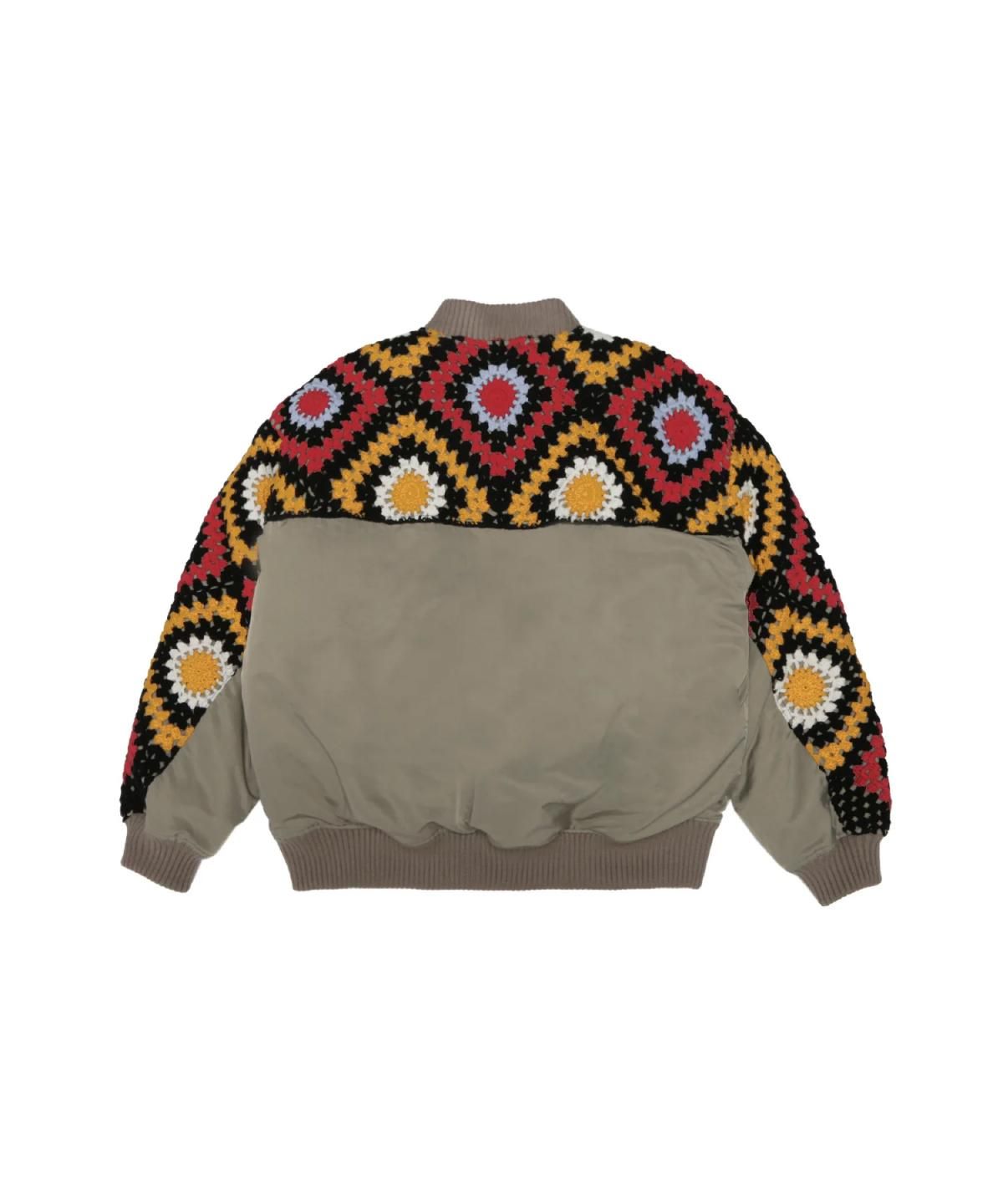 ナイロンツイルと編み柄に特徴のある クロシェ編みニットをドッキングが特徴的なデザイン。