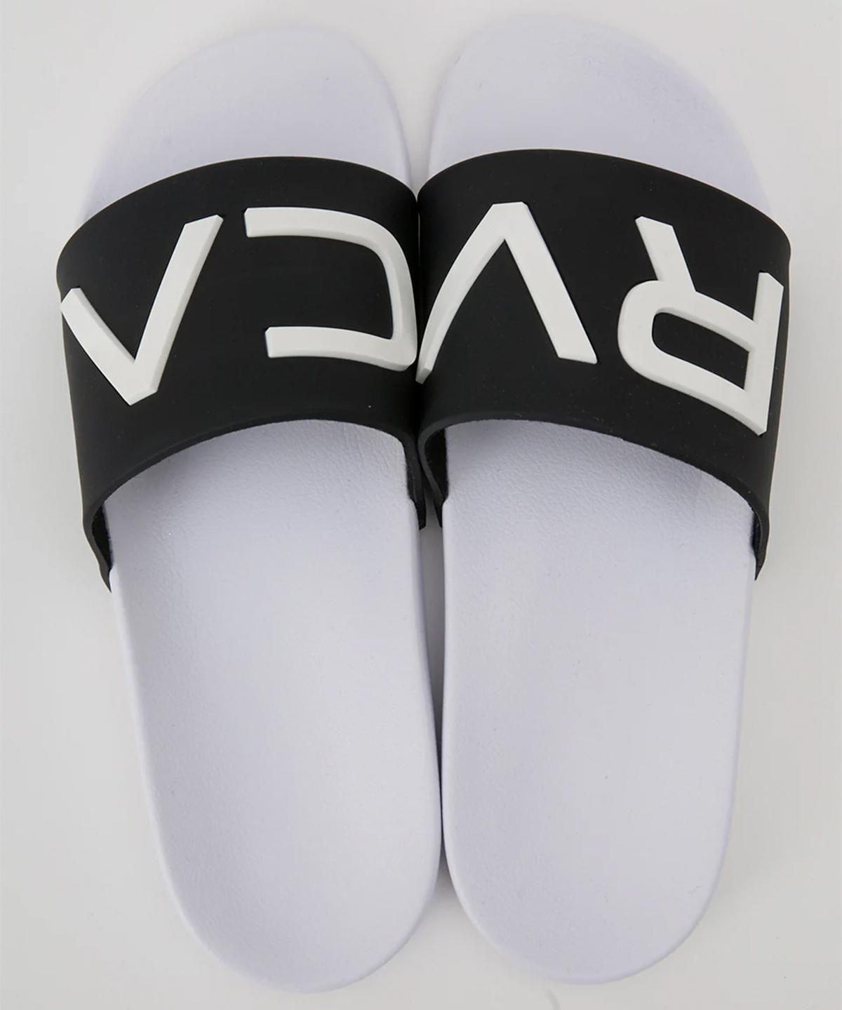 足の甲ストラップにRVCAロゴをエンボス加工で施したスライドサンダル。