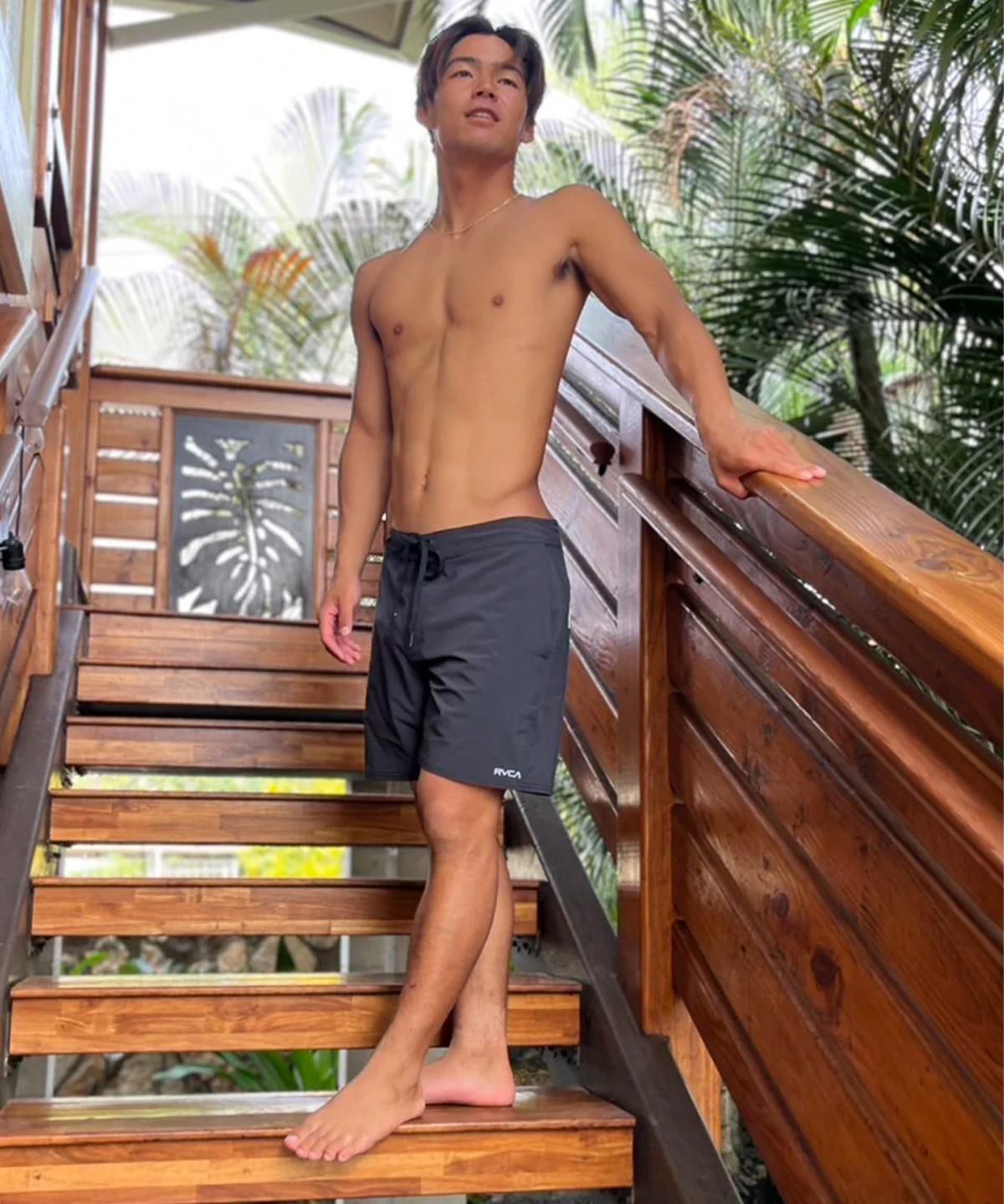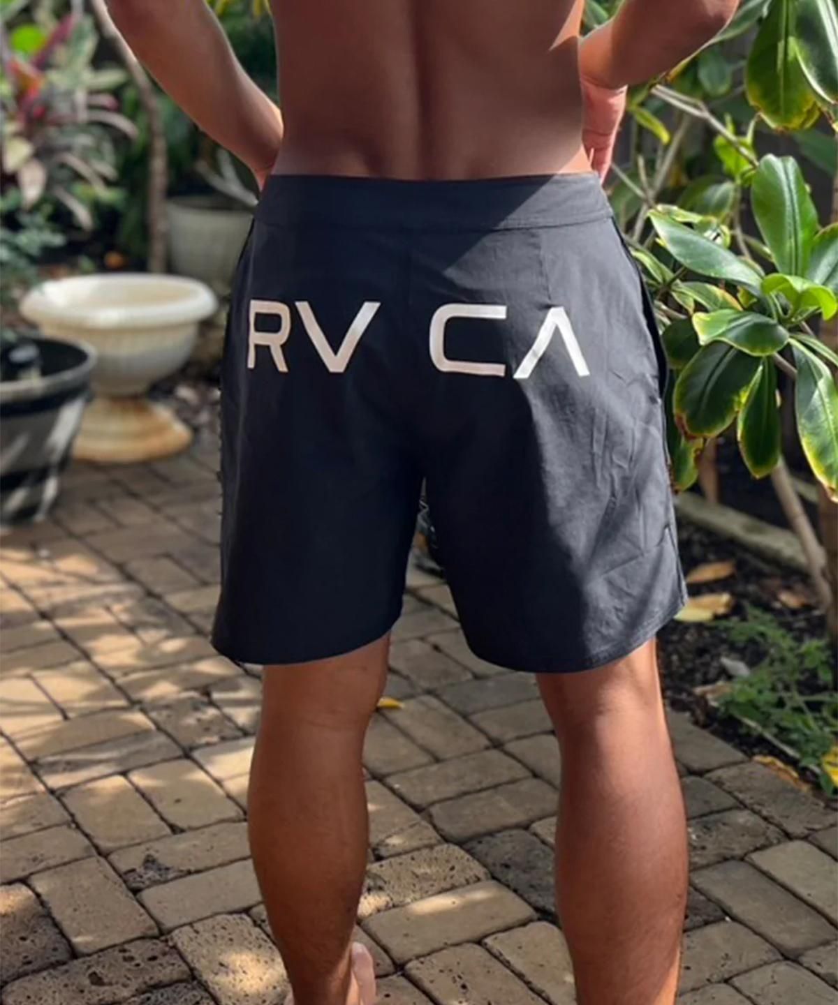 バックにRVCAロゴのラバープリントを施した、シンプルなデザインのボードショーツ。